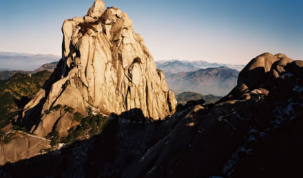 天柱峰,又名筍子尖,海拔1488.4米,為江淮地區(qū)最高山峰。安徽天柱山又名皖山,安徽省簡(jiǎn)稱“皖”由此而來(lái)。天柱山在長(zhǎng)江北岸、安徽省潛山市境內(nèi),其主峰高聳挺立,如巨柱擎天,因而稱為天柱峰,山也就此得名。唐代大詩(shī)人李白曾寫了一首贊美天柱山風(fēng)景奇秀的詩(shī)“江上望皖公山”(皖公山即天柱山),詩(shī)云:“奇峰山奇云,秀木含秀氣。清晏皖公山,巉絕稱人意”