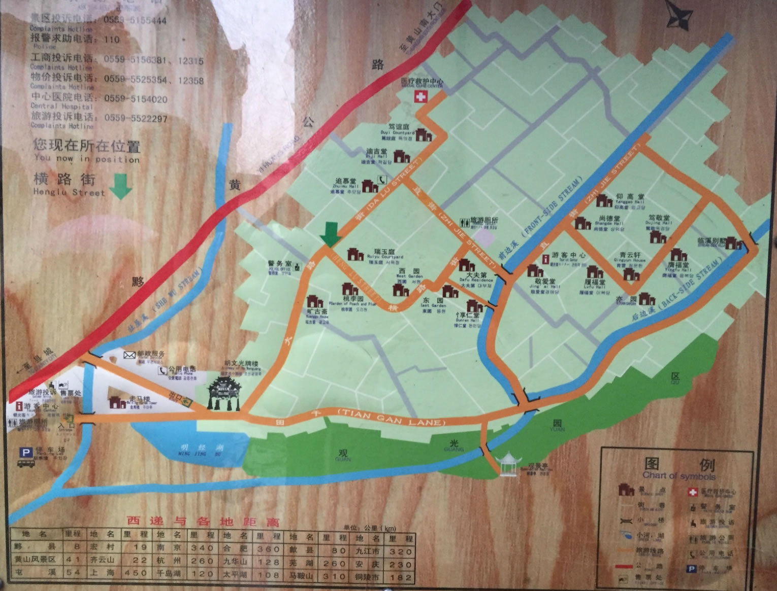 西遞、宏村古民居位于中國(guó)東部安徽省黟縣境內(nèi)的黃山風(fēng)景區(qū)。宏村始建于南宋紹興年間(公元1190—1194年),原為汪姓聚居之地,綿延至今已有800余年。它背倚黃山余脈羊棧嶺、雷崗山等,地勢(shì)較高,經(jīng)常云蒸霞蔚,有時(shí)如濃墨重彩,有時(shí)似潑墨寫(xiě)意,真好似一幅徐徐展開(kāi)的山水長(zhǎng)卷,因此被譽(yù)為“中國(guó)畫(huà)里的鄉(xiāng)村”。著名景點(diǎn)有南湖風(fēng)光、南湖書(shū)院、月沼春曉、牛腸水圳、雙溪映碧、亭前大樹(shù)、雷崗夕照、樹(shù)人堂、明代祠堂樂(lè)敘堂等。南宋紹興年間,古宏村人為防火灌田,獨(dú)運(yùn)匠心開(kāi)仿生學(xué)之先河,建造出堪稱“中國(guó)一絕”的人工水系,是當(dāng)今“建筑史上一大奇觀”:巍峨蒼翠的雷崗為牛首,參天古木是牛角,由東而西錯(cuò)落有致的民居群宛如龐大的牛軀。引清泉為“牛腸”,經(jīng)村流入被稱為“牛胃”的月塘后,經(jīng)過(guò)濾流向村外被稱作是"牛肚"的南湖。人們還在繞村的河溪上先后架起了四座橋梁,作為牛腿。這種別出心裁的科學(xué)的村落水系設(shè)計(jì),不僅為村民解決了消防用水,而且調(diào)節(jié)了氣溫,為居民生產(chǎn)、生活用水提供了方便,創(chuàng)造了一種"浣汲未防溪路遠(yuǎn),家家門(mén)前有清泉"的良好環(huán)境。