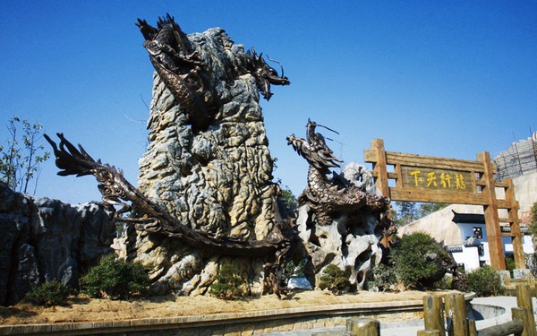 五千年文博園“龍行天下”景點(diǎn)是以兩條近五百米長(zhǎng),由奇石、盆景組成的山水盆景龍和中華漢字龍盤(pán)旋而成。采用牌坊、徽派建筑、博古架等古文化元素,運(yùn)用造景、石雕等表現(xiàn)手法,融合了中華漢字文化與盆景藝術(shù)。因?yàn)闈h字是中華民族文化的載體,是中華民族對(duì)世界文化的卓越貢獻(xiàn),它與拼音文字成為世界文字兩大體系。漢字的創(chuàng)造,其對(duì)世界文化的貢獻(xiàn),絕不亞于中國(guó)的四大發(fā)明。而盆景起源于中國(guó),已有一千多年的歷史,在世界藝術(shù)之林中,它是富有自然情趣的東方藝術(shù)精品之一,也是我國(guó)獨(dú)特的傳統(tǒng)園林藝術(shù)之一。