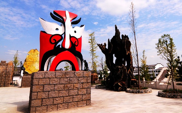 坐落于五千年文化長(zhǎng)廊的京劇臉譜造型,其含基座高4米,寬1米6,并沒(méi)有根據(jù)某位人物造型打造,而出自于五千年文博園自己的創(chuàng)意,以紅白兩色為主色,大膽的運(yùn)用寫(xiě)真、夸張、抽象的藝術(shù)形式,結(jié)合獨(dú)創(chuàng)的手工藝制作而成。其色彩鮮明、立體感強(qiáng)、線條柔美,打破了固定譜式的束縛,完全從一個(gè)全新的角度理解和認(rèn)識(shí)臉譜藝術(shù),試圖從中探求一條臉譜在現(xiàn)代生活中的現(xiàn)實(shí)意義和藝術(shù)價(jià)值。