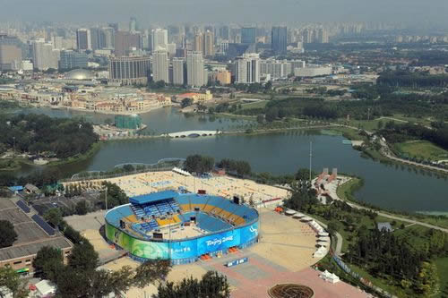朝陽(yáng)公園沙灘排球場(chǎng)是北京奧運(yùn)會(huì)臨時(shí)場(chǎng)館之一,位于朝陽(yáng)公園北部原煤氣用具廠舊址,由中建國(guó)際設(shè)計(jì)顧問有限責(zé)任公司設(shè)計(jì)。整個(gè)比賽用地包括一個(gè)主比賽場(chǎng)、兩塊熱身場(chǎng)和六塊訓(xùn)練場(chǎng),共設(shè)觀眾席位12000個(gè),項(xiàng)目規(guī)劃占地面積184500平方米,建設(shè)用地面積150003平方米,總建筑面積14169平方米。包括一個(gè)住比賽場(chǎng)、兩塊熱身場(chǎng)、六塊訓(xùn)練場(chǎng)和三座附屬功能用房,主賽場(chǎng)結(jié)構(gòu)為管架式鋼結(jié)構(gòu)。綠化面積達(dá)70%以上,是占地面積最大、綠化面積最廣的場(chǎng)館之一。沙灘排球場(chǎng)館跟“鳥巢”一樣,都屬于鋼結(jié)構(gòu)建筑,用鋼量達(dá)2400噸。由于它形似“燕窩”,于是就有北有“鳥巢”、東有“燕窩”的戲說。