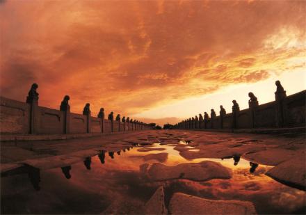盧溝橋文化旅游區(qū),地處北京西南,西臨永定水,南望京港澳高速路,由盧溝橋、宛平城、中國(guó)人民抗日戰(zhàn)爭(zhēng)紀(jì)念雕塑園等景區(qū)組成,是一個(gè)集歷史、文化、藝術(shù)和革命傳統(tǒng)教育為一體的旅游觀光勝地。盧溝橋位于北京市西南15千米豐臺(tái)區(qū)永定河上,距廣安門(mén)10千米,是北京現(xiàn)存最古老的石造聯(lián)拱橋,始建于金大定29年(1189年),建成于金章宗明昌3年(1192年)。盧溝橋全長(zhǎng)266.5米,寬9.3米,下分11個(gè)券洞。橋身兩側(cè)共有石雕護(hù)欄望柱281根。柱頭上雕有伏臥的大小石獅共501只,形態(tài)各異,栩栩如生。