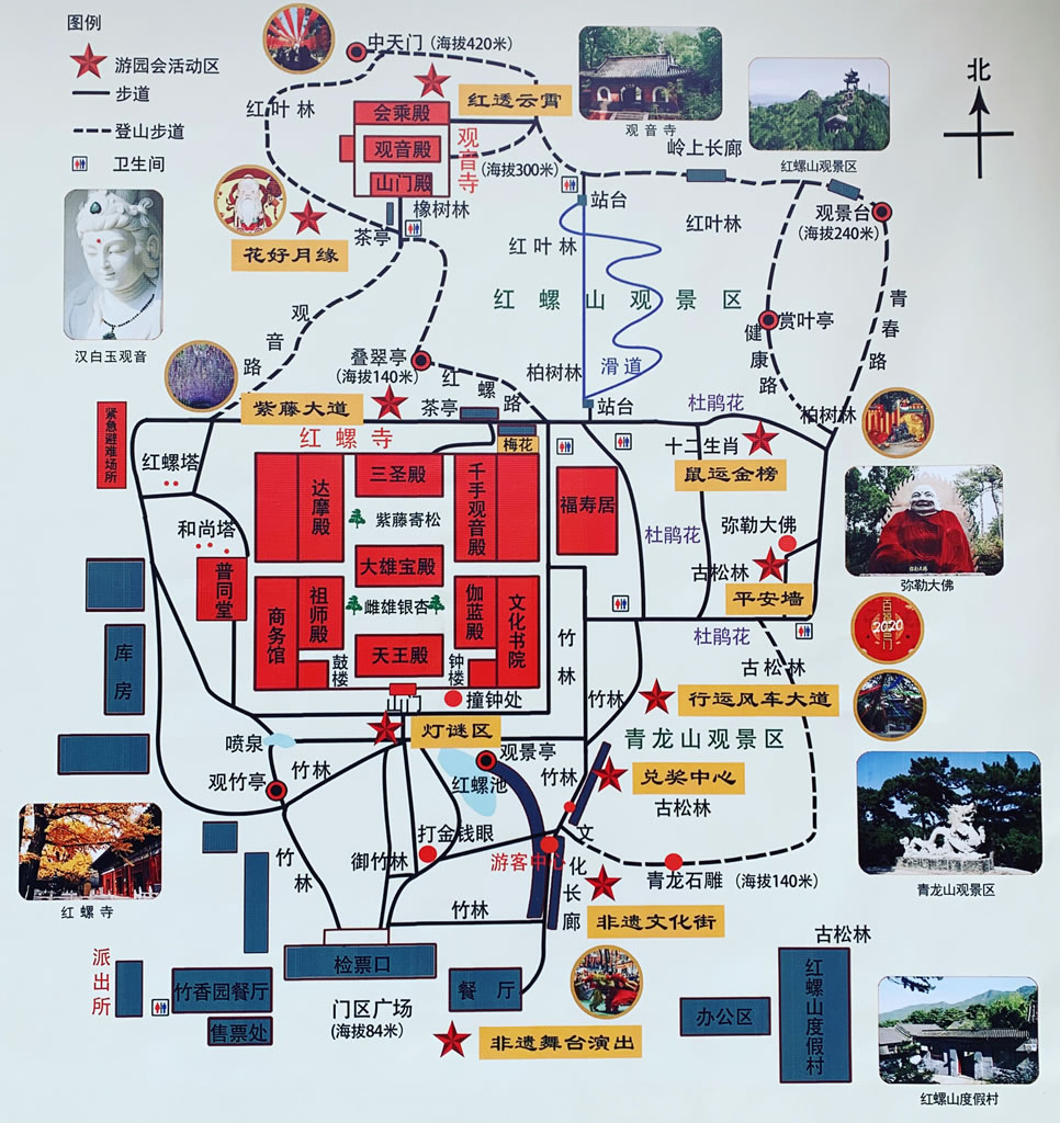旅游區(qū)環(huán)境幽雅,古木參天,經(jīng)年常青,四季花香,人文景觀與自然景觀競(jìng)秀。紫藤寄松、御竹林、雌雄銀杏號(hào)稱三絕景;寺西之珍珠泉,碧透似鏡,沸泡如珠,有神泉之稱;寺南之紅螺湖,水波蕩漾,溢彩流光,是一個(gè)劃船、游泳、垂釣的好去處。景區(qū)經(jīng)多年開發(fā)建設(shè),逐步形成了“吃、住、行、游、購(gòu)、娛”于一體的、綜合配套設(shè)施完備的旅游度假風(fēng)景區(qū)。 |