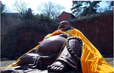 彌勒佛:千佛閣上坐神佛,納得天下福滿門。千年香樟木雕彌勒佛,作為戒臺(tái)寺唯一一尊露天佛,常得日月之光,納天地靈氣,立于千佛閣上修得萬(wàn)佛之心,用萬(wàn)世不變的歡喜笑顏,用大肚笑納天下事,也容載著天下人的希望。彌勒佛即未來佛,俗稱大肚彌勒,他強(qiáng)調(diào)要大度能容,不要計(jì)較人世間的是非憎愛。大肚彌勒寓神奇于平淡,示美好于丑拙,顯莊嚴(yán)于詼諧,現(xiàn)慈悲于揶揄,代表了中華民族寬容、和善、智慧、幽默、快樂的精神。香樟木質(zhì)地堅(jiān)硬,且具香氣,是明清時(shí)期宮廷木器三大主要用材之一。香樟木年份越久越珍貴,千年香樟木自然就成了可遇不可求的無價(jià)之寶。戒臺(tái)寺此件木雕大佛系為一整塊千年香樟木根雕,雕工精美,形態(tài)可鞠,盤腿而坐,袒胸露腹,自然形態(tài)惟妙惟肖。