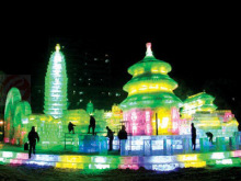 冰燈區(qū)建在山谷中,那里風大,溫度要比市內低5~8度,前往參觀游玩的朋友們注意保暖。