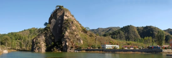 獨秀峰 獨秀峰景區(qū)位于馮家峪村北兩公里的白馬關(guān)河畔,占地3000畝,景色秀美。游覽路線全長約15公里,植被茂盛,景觀奇特。景區(qū)內(nèi)常年溫度比市區(qū)低5—6℃,且道路平緩,是中老年人旅游,避暑消夏的理想勝地。獨秀峰是景區(qū)的主要景觀,峰高近百米,一棵百年老松,傲然挺立在峰頂。此峰三面環(huán)水,四壁陡峭,沿石階登上山峰,無限風(fēng)光,盡收眼底,和風(fēng)拂面,沁人心脾。峰腳下,在聯(lián)拱閘的攔蓄下,形成了一個近20畝的“湖泊”,波光粼粼,游魚成群,四周綠樹成蔭,泛舟其上,頓覺清涼無比,怎能不讓人心曠神怡、流連忘返。