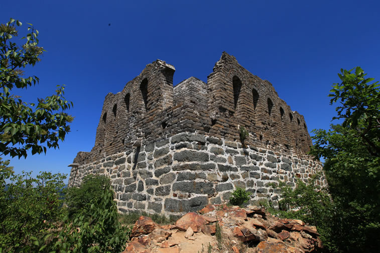 九眼樓長城 九眼樓長城位于四海鎮(zhèn)火焰山頂部。因敵樓每面有9個箭窗,故名。又因山勢高峻,晴天可望到北京城,故也稱望京樓。為長城重要關口之一。海拔1141米。現(xiàn)樓內有灶炕、居室遺跡,近處有馬場、晾馬場、軍營(營城)遺跡。樓北側有明代官員徐申于萬歷十三年(公元1585年)巡行到該地書寫的大理石碑一方。 九眼樓為正方雙層建筑,因每邊有九個了望孔而得名,現(xiàn)存一層,高度為7.8米,每邊為13米,了望孔高1.65米,寬0.5米,內有軍士來往巡視寬1.2米的環(huán)行步道。九眼樓下部砌石條,上部用白灰砌青色城磚,構建十分堅固而壯美。樓下西側有小平臺,為軍士集中的場地。平臺北側,有磚砌的臺階,沿臺階可達樓南門。樓頂為磚砌券拱式結構,樓內寬大,可住兵儲器,向北開兩窗,四面各有一門,門高兩米,闊1.2米,出入極便利。 |
