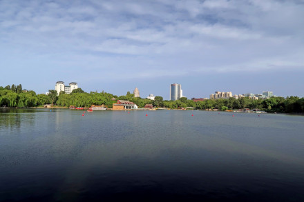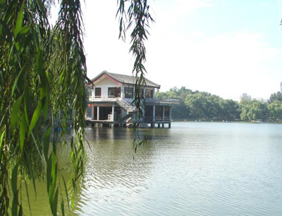 問(wèn)月樓:為一水榭,幽雅別致。湖西部有“報(bào)恩樓”、“紫竹垂釣”;南部有“澄碧山房”、“兒童樂(lè)園”。