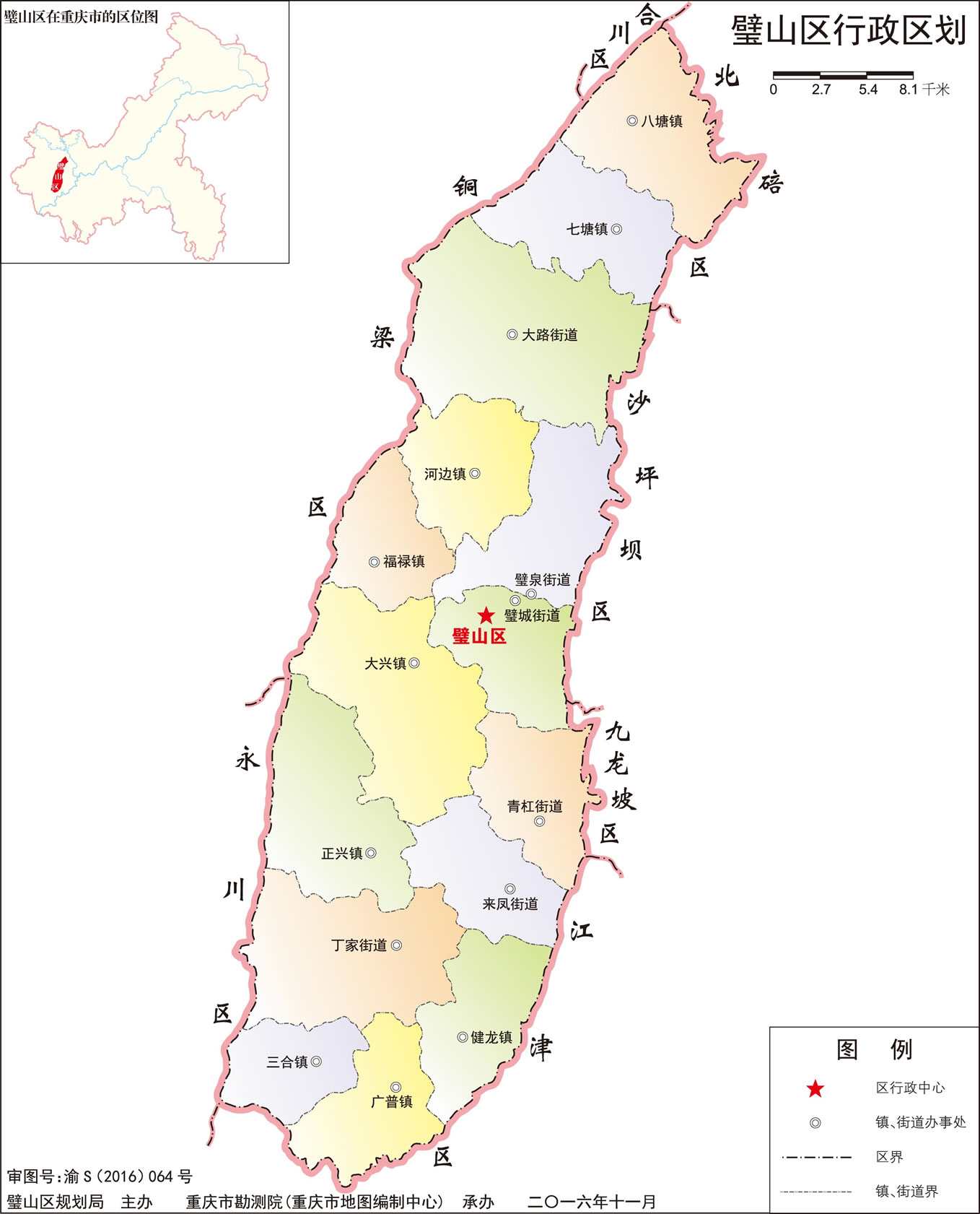 街道;璧城街道、璧泉街道、青杠街道、來(lái)鳳街道、丁家街道、大路街道