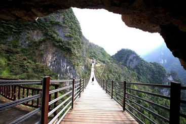 情人谷長300米,是景區(qū)內最具浪漫情調的一段山谷。山谷有“舍身崖”“心型潭”,有仿古彩樓表演巴人后裔娶親的風俗。