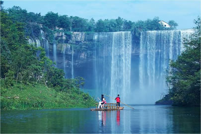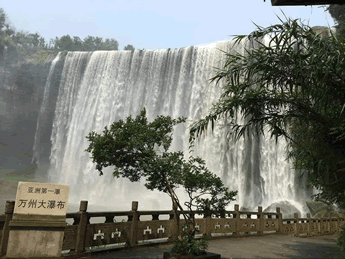 萬州大瀑布又稱青龍瀑布、甘寧瀑布。位于核心景區(qū)青龍河中段,寬151米,高64.5米,單掛面積9739.5平方米,為迄今發(fā)現(xiàn)的亞洲面積最大的單掛瀑布。瀑布長年浩浩蕩蕩,凌空飛瀉,其勢如千軍萬馬橫空出世,氣吞萬象。在陽光的照射下,瀑珠時(shí)時(shí)生輝,瀑霧處處成虹。隨著水勢大小、陽光強(qiáng)弱、觀賞角度的變換,彩虹的位置、形態(tài)、色澤還會(huì)發(fā)生奇異的變化,形成“飛瀑斜虹”“臥波長虹”“雙曲彩虹”“跨岸飛虹”“水簾霓虹”“飲洞巨虹”等美景。