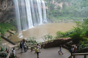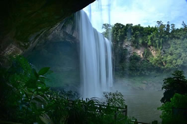 水簾洞位于瀑布下方,由整塊的巨巖組成。巨巖由砂巖青石構(gòu)成,面積有上萬平方米。水簾洞內(nèi)能以360度的全景視角觀賞到大瀑布“飛流直下三千尺,疑是銀河落九天”的恢宏氣勢,體驗(yàn)與瀑布親密接觸的清爽,領(lǐng)略春雨瀟瀟、秋雨綿綿、夏雨磅礴的四季風(fēng)雨情致,有奇妙的季節(jié)穿越之感。