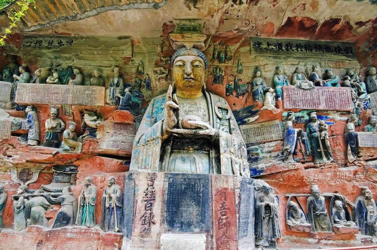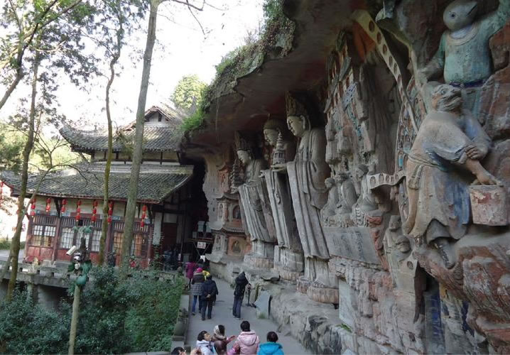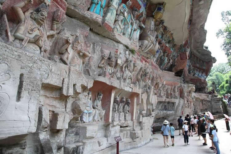 重慶市的大足石刻以其規(guī)模宏大、雕刻精美、題材多樣、內(nèi)涵豐富和保存完整而著稱于世。它集中國佛教、道教、儒家“三教”造像藝術(shù)的精華,以鮮明的民族化和生活化特色,成為中國石窟藝術(shù)中一顆璀璨的明珠。它以大量的實物形象和文字史料,從不同側(cè)面展示了九世紀末至十三世紀中葉中國石刻藝術(shù)的風格和民間宗教信仰的發(fā)展變化,對中國石刻藝術(shù)的創(chuàng)新與發(fā)展做出了重要貢獻,具有前代石窟不可替代的歷史、藝術(shù)和科學價值。許多歐洲人、尤其是法國人,對大足石刻寵愛倍加。