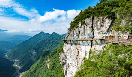 九重天景區(qū)位于豐都縣雙路鎮(zhèn)蓮花山,國家AAAA級景區(qū),距縣城15公里,景區(qū)核心景點(diǎn)玻璃棧道全長3.5公里,距離龍河谷底900余米,一座長達(dá)200余米、懸空高度達(dá)900余米的5D玻璃吊橋聳立于棧道之上,景區(qū)還有懸崖秋千、飛拉達(dá)攀巖、網(wǎng)紅大秋千等體驗(yàn)項(xiàng)目,大人小孩皆可體驗(yàn)。另外景區(qū)配備了天空之境、玫瑰長廊、風(fēng)車長廊等網(wǎng)紅打卡點(diǎn),讓網(wǎng)紅打卡者流連忘返。觀龍河峽谷絕美風(fēng)光,體驗(yàn)高空項(xiàng)目的驚險(xiǎn)刺激。