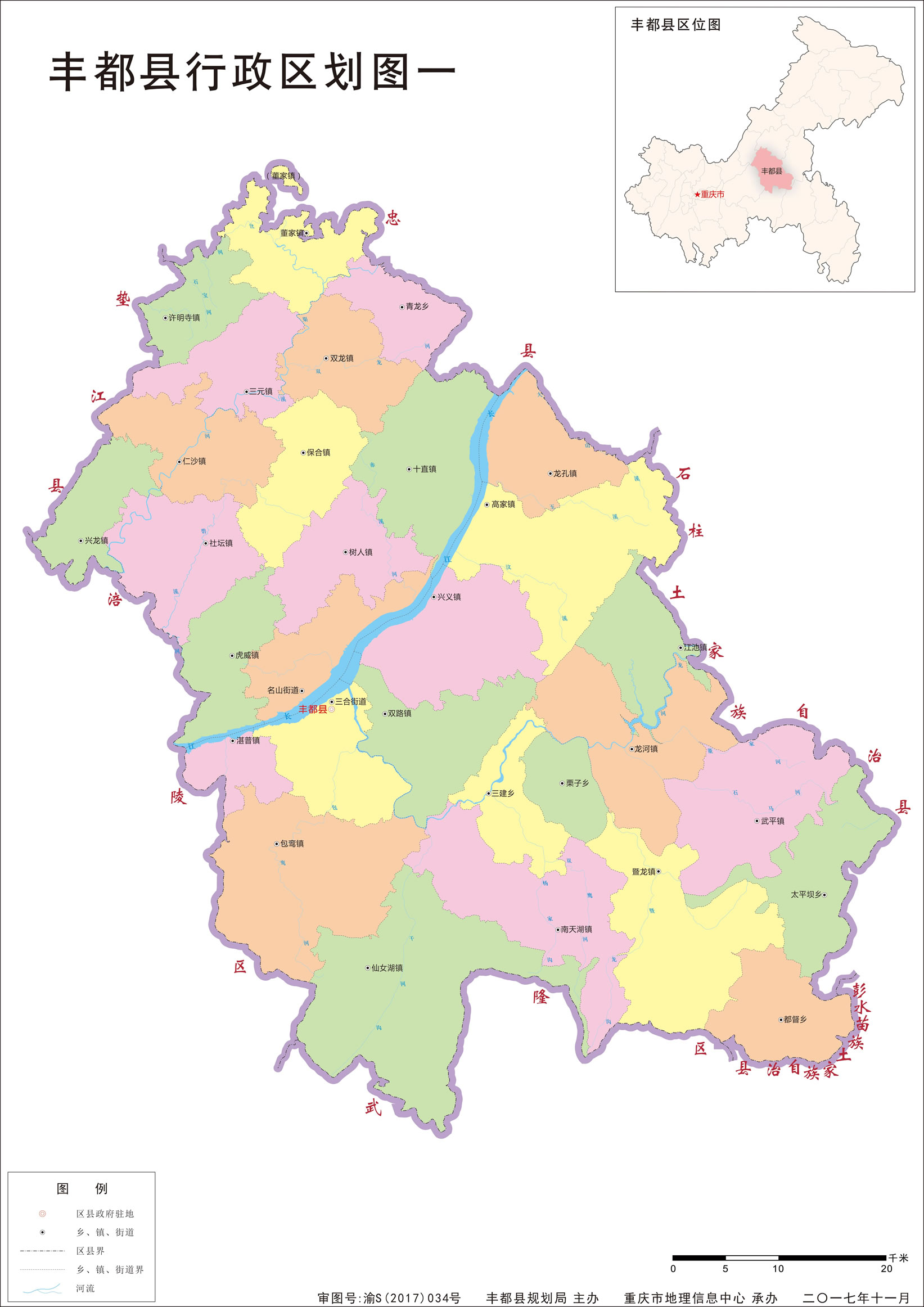 豐都縣轄2個(gè)街道、23個(gè)鎮(zhèn)、5個(gè)鄉(xiāng):