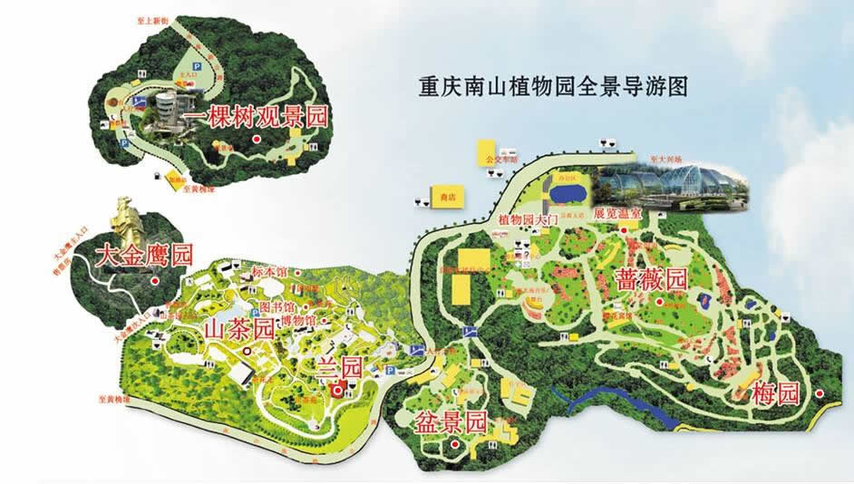 重慶市南山植物園位于重慶市南岸區(qū)南山植物園路101號,與重慶市中心隔江相望,距市中心15公里。其海拔420m-680.5米,東西寬5000米,南北長3500米,規(guī)劃控制面積15平方公里,實際占地551公頃。