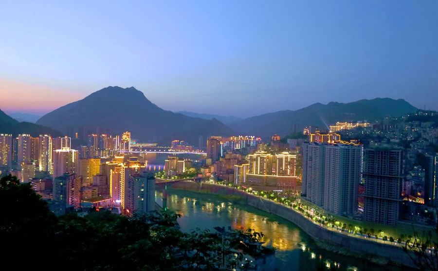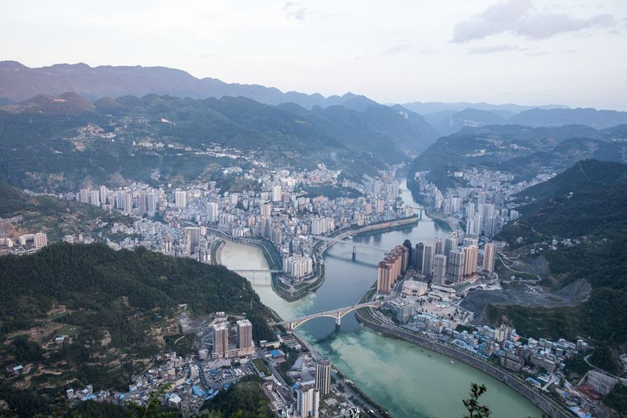 彭水縣,位于鄂黔隆起帶,向四川中臺坳下滑的斜坡上,形成西北高東南低的地勢特征。海拔190~1860米,相對高差1670米。地處武陵山區(qū),地勢西北高而東南低。地形分為構(gòu)造剝蝕的中、低山地形。地貌類型復(fù)雜,自然環(huán)境各異,“兩山夾一槽”是彭水地貌的主要特征。各類地貌中丘陵河谷區(qū)占13.39%,低山區(qū)占52.83%,中山區(qū)占34.03%。