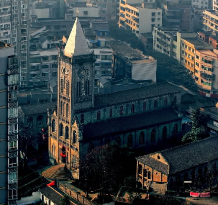 重慶市榮昌區(qū)天主教堂建成于1915年,是利用“余棟臣教案”的賠款修建。教堂位于榮昌縣城后西街,主體為哥特式建筑風格,由圣堂主體樓、神父樓和教會學校三部分組成,后多遭破壞、占用,現(xiàn)存約四分之一。重慶榮昌縣天主教堂解放后被征用,1980年恢復宗教活動,F(xiàn)為省級文物保護單位,電影《1942》曾在此取景。該教堂于1915年由法國人設計并修建,主體建筑為歌特式建筑,是西南地區(qū)最大且保存最完整的教堂。