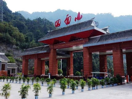 水口寺瀑布高94.18米,寬30米,最大的流量為每秒120多立方米,是四面山第四大高瀑。觀水口寺瀑布可經(jīng)過棧道到達(dá)瀑布背面平視瀑布,可從“九道拐”走下818步石梯于底端仰望瀑布。坐石觀景,四周奇石嶙峋,入目銀瀑飄飛,腳下流水潺潺,半山古樹盤扎。