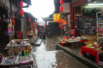 十八梯,因此處梯坎有十八級臺階而得名。從前,此處曾是商賈云集,各種行幫勢利相互傾軋之地。幾百年來,老街雖經(jīng)多次修整,但十八梯仍保持原貌,因而成為古鎮(zhèn)滄海桑田的見證。