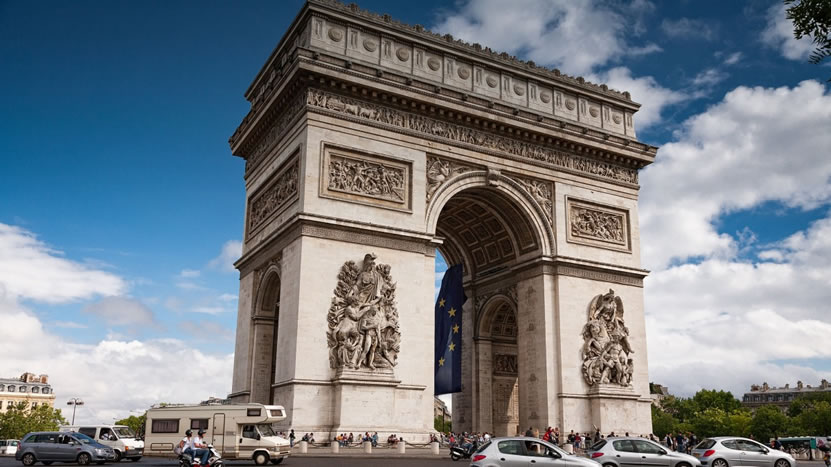 巴黎凱旋門 凱旋門(法語:L'Arc de Triomphe),位于法蘭西共和國首都巴黎市中心城區(qū)香榭麗舍大街,地處巴黎戴高樂星形廣場中央,是為頌揚奧斯特里茨戰(zhàn)役勝利,由法蘭西第一帝國皇帝拿破侖主持修建的一座紀念性建筑,是法國國家象征之一、法國四大代表建筑之一、巴黎市地標(biāo)紀念碑。 凱旋門正如其名,是一座迎接外出征戰(zhàn)的軍隊凱旋的大門。它是現(xiàn)今世界上最大的一座圓拱門,位于巴黎市中心戴高樂廣場中央的環(huán)島上面。這座廣場也是配合雄獅凱旋門而修建的,因為凱旋門建成后,給交通帶來了不便,于是就在19世紀中葉,環(huán)繞凱旋門一周修建了一個圓形廣場及12條道路,每條道路都有40~80米寬,呈放射狀,就像明星發(fā)出的燦爛光芒,因此這個廣場又叫明星廣場。凱旋門也稱為“星門”。