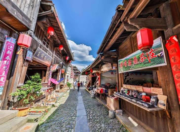 和平古鎮(zhèn)保留了完整的古街巷。城堡內(nèi)有兩條分別連接?xùn)|西城門和南北城門的街,街道兩側(cè)縱橫交錯的大小巷道都是中間鋪青石板,兩邊鋪河卵石,有的全部鋪河卵石。貫穿古鎮(zhèn)南北的舊市街,被譽為“福建第一街”。古街全長600余米,寬6-8米,街中心全以青石板鋪筑,因北高南低的地形關(guān)系,街道隨形就勢形成“九曲十三彎”,宛如一條騰空欲飛的青龍。古街兩旁分布著近百條縱橫交錯呈網(wǎng)狀的古建卵石巷道,或長或短,或?qū)捇蛘,高墻窄巷,古樸幽遠(yuǎn)。古民居鱗次櫛比,既有中原古風(fēng),又具地方特色,堪稱古民居的瑰寶。