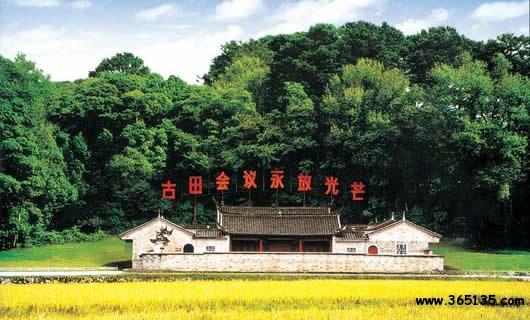 古田會(huì)議會(huì)址,位于古田鎮(zhèn)溪背村,原系廖氏宗祠,建于公元1848年(清道光二十八年),為四合院式建筑,有庭院、前后兩廳和左右兩廂房,建筑面積為826㎡。1917年,建立古田第一所小學(xué)——“和聲小學(xué)”,1929年5月紅四軍進(jìn)駐古田后把“和聲小學(xué)改名為曙光小學(xué),同年12月28日至29日,由毛澤東同志親自主持的紅四軍第九次代表大會(huì)(即古田會(huì)議)在這里勝利召開,通過了具有歷史意義的古田會(huì)議決議案,確立了思想建黨、政治建軍的指導(dǎo)思想和黨指揮槍的原則,是建黨建軍史上的里程碑,因此該會(huì)址先后被評(píng)為福建省“十佳風(fēng)景區(qū)之一”、全國第一批重點(diǎn)保護(hù)單位、全國十大優(yōu)秀愛國主義教育基地、全國紅色旅游經(jīng)典景區(qū)以及國家AAAA級(jí)旅游區(qū)。