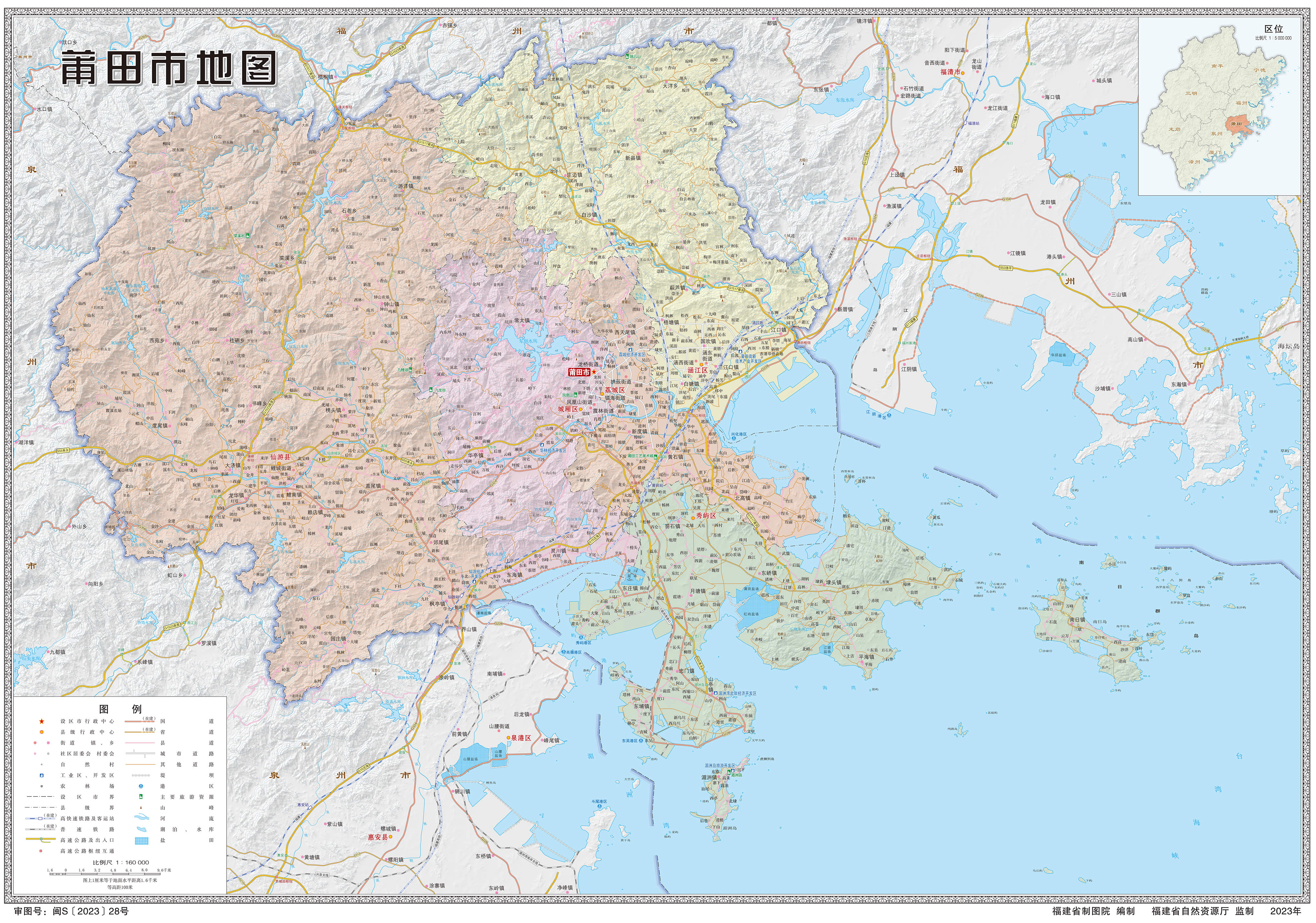 大陸海岸線,由北至南興化灣、平海灣和湄洲灣3個海灣相連而成。大陸岸線漫長曲折,總長336千米。直線距離與岸線長度之比的曲折率高達1:7.67。分布有基巖岸、沙岸、淤泥岸、紅樹林岸、河口岸等。大陸灘涂面積為281.19平方千米,0—5米淺海面積251.81平方千米,5—10米淺海面積255.83平方千米,10—20米淺海面積523.92平方千米。擁有閩中漁場面積729平方海里。在3個海灣前沿分布有267個海島,其中有居民島11個。境內(nèi)海島均為大陸島,屬于基巖島。分布相對集中,呈明顯的鏈狀。構(gòu)成南日群島、十八列島、虎獅列島等。