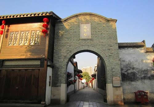 衣 錦坊是“三坊”中的第一坊,舊名通潮巷。據(jù)清《榕城考古略》記載:宋朝的“陸蘊、陸藻兄弟典鄉(xiāng)郡居此,名祿錦,后王益祥致江東提刑任,更名衣錦。”宋時稱“祿錦”,明朝更為“衣錦”,其實都是說坊內(nèi)有人在外出仕做大官,之后衣錦還鄉(xiāng),榮耀鄉(xiāng)里,所以坊名也改為了“衣錦”。過去稱“通潮”,則是因為這個地方是水網(wǎng)地區(qū),福州西湖、南湖的潮水可以通到這個坊巷的溝渠里去。坊中16號為清嘉慶進士鄭鵬程居宅,其中的衣錦坊水榭戲臺最具特色。這是一個木構單層平臺,四柱單開間,下建清水池塘,中隔天井,正面為閣樓。于此觀看戲劇演出,水清、風清、音清,具有聲學原理和美學價值,是福州市現(xiàn)存的水榭戲臺。