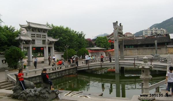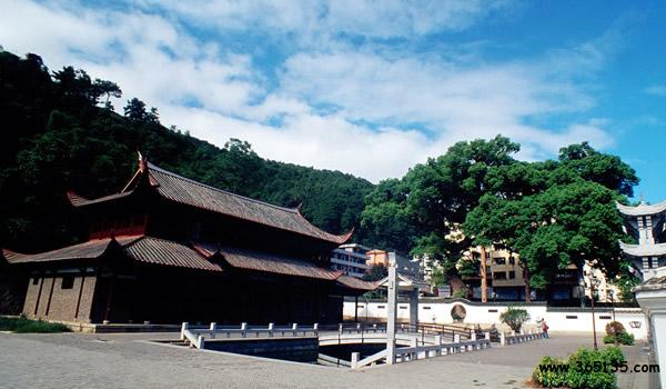 南溪書院:在尤溪縣城南的公山之麓,原為邑人鄭義齋館舍。北宋宣和五年(1123年),朱熹之父朱松任尤溪縣尉,去官后寓居于此。南宋建炎四年(1130年),朱熹在此誕生。朱熹逝世后,縣令李修于嘉熙元年(1237年)捐資在此修建文公祠、韋齋祠、半畝方塘和尊道堂等建筑,祀朱家父子。寶元年(1253年),宋理宗賜額“南溪書院”。元至正元年(1341年),分建二祠,明清后屢有修繕擴建。書院古樸莊嚴,現(xiàn)建筑面積1000平方米,有韋齋祠、觀書第、毓秀坊、毓秀亭等建筑。正堂當中立朱熹石膏塑像,兩旁是朱子手書板聯(lián)四幅:“讀書起家之本 和順齊家之本 勤儉治家之本 循理保家之本”。四壁高懸其上溯八代列祖列宗畫像。書院內(nèi)的方塘,為朱熹幼年讀書處。朱熹《觀書有感》詩曰:“半畝方塘一鑒開,天光云影共徘徊;問渠那得清如許,為有源頭活水來”。其中的“半畝方塘”即指此處。明弘治十一年(1498年),知縣方溥主持,把半畝方塘擴大浚深,并建亭于塘上,通以石橋,取名“活水亭”,今皆修復。