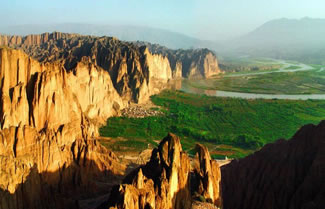 黃河石林生成于今400多萬年的的第三紀末期和第四紀初期的地質時代,由于地殼運動,形成以黃色的河湖相砂礫巖為主、造型千姿百態(tài)的石林地貌奇現。石林景區(qū)陡崖凌空,景象萬千,峰回路轉,步移景變,其造型天造地設、鬼斧神工,猶如雕塑大師之夢幻杰作!坝^音打坐”、“屈原問天”、“木蘭遠征”、“月下情侶”、“十里屏風”“天橋古道”、“一線天”等高達幾十米甚至上百米的形態(tài)各異、千奇百怪的石柱石筍石林景觀隨處可見。中華民族的母親河——黃河,在這里形成S型的回水灣由南向北進入寧夏地界,河的東岸除高聳的石林外,還有背山面河,林木蔥郁的“龍灣綠洲”。專家評價:甘肅黃河石林集中國地質地貌之大成,組合優(yōu)異,動靜結合,國內罕見,西北獨有,堪稱中華自然奇觀的一處極具開發(fā)價值、高品位的自然生態(tài)旅游景區(qū)資源。 這里適合休閑度假、獵奇探險、地質考察、漂流攀巖等旅游娛樂項目,還可作為西部影視片、科學幻想片的最佳外景基地。甘肅黃河石林是中國西部旅游觀光的一處勝地,是黃土高原孕育而成的美麗奇葩。