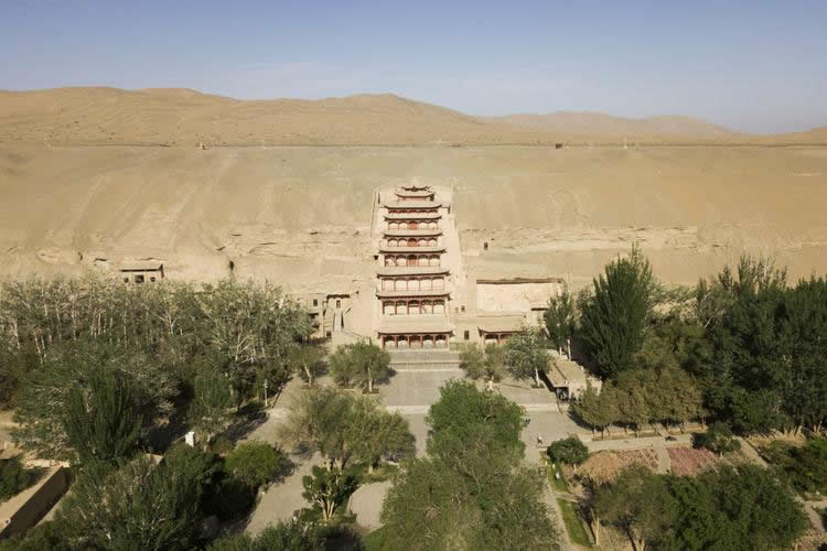 敦煌位于甘肅省的西部,從自然地理的位置上說,正處在河西走廊的西部盡頭處。這里南接青海,西連新疆,自漢代以來一直就是中西交通的樞紐。它的開鑿從十六國時(shí)期至元代,前后延續(xù)約1000年,這在中國石窟中絕無僅有。它既是中國古代文明的一個(gè)璀璨的藝術(shù)寶庫,也是古代絲綢之路上曾經(jīng)發(fā)生過的不同文明之間對(duì)話和交流的重要見證。莫高窟現(xiàn)有洞窟735個(gè),保存壁畫4.5萬多平方米,彩塑2400余尊,唐宋木構(gòu)窟檐5座,是中國石窟藝術(shù)發(fā)展演變的一個(gè)縮影,在石窟藝術(shù)中享有崇高的歷史地位?邇(nèi)繪、塑佛像及佛典內(nèi)容,為佛徒修行、觀像、禮拜處所。敦煌石窟是建筑、雕塑、壁畫三者結(jié)合的立體藝術(shù)。洞窟分南北兩區(qū):南區(qū)492個(gè)洞窟是莫高窟禮佛活動(dòng)的場所,北區(qū)243個(gè)洞窟主要是僧人和工匠的居住地,內(nèi)有修行和生活設(shè)施土炕坑、煙道、壁龕、燈臺(tái)等,但多無彩塑和壁畫。
