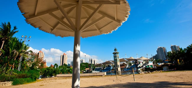 陽光海岸位于深圳歡樂谷入口方向西北部,下設6個娛樂項目,分別為綠蔭長廊、青蛙跳、陽光海岸沙灘、沙灘競技場、游船碼頭、佛陀樹。