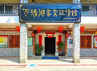 萬(wàn)綠湖客家風(fēng)情館,于2006年10月建成開(kāi)館,客家風(fēng)情館以客家特有的騎樓建筑風(fēng)格進(jìn)行設(shè)計(jì)施工,館名“萬(wàn)綠湖客家風(fēng)情館”由中國(guó)漫畫(huà)家華君武題寫(xiě),館內(nèi)介紹著客家的風(fēng)俗習(xí)慣及客家日常生活物件,展廳共分2層,建設(shè)面積近2000平方米,建筑風(fēng)格完全按照傳統(tǒng)客家建筑設(shè)計(jì)。