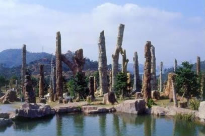 化石森林景區(qū)由四部分組成:化石森林、深圳古生物博物館、香港回歸紀念林、桃花園;謴1997年開始籌建,占地2萬平方米,收集引進了來自遼寧、新疆和內蒙古等地的硅化木500多株。這些硅化木經專家鑒定屬松杉類植物,形成于一億五千萬年至七千萬年的中生代時期。那時正是球果類植物演化史中最鼎盛的時期,高大的樹木由于激烈的地殼運動而被埋在地層之下,經過硅化作用形成了化石。迄今,這是世界上唯一一座大型遷地保存的化石森林。古生物博物館利用化石、圖片、多媒體技術等材料以一種系統(tǒng)完整和易于理解的方式解釋了地球上生命的歷史。