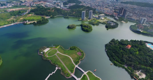 鴛鴦湖位于陽江市中心。水面積為47公頃,為天然的氣溫調(diào)節(jié)湖。鴛鴦湖湖水清澈,湖岸楊柳垂堤,山清水秀,花繁葉茂,樓臺(tái)閣榭點(diǎn)綴其間,與綠樹相映成趣,別具南國湖光韻味。湖邊有南國風(fēng)箏場(chǎng),1991年建成,占地12萬平方米,“南國風(fēng)箏場(chǎng)”由原廣東省省長(zhǎng)葉選平題字。風(fēng)箏場(chǎng)可容數(shù)萬群眾同時(shí)進(jìn)行放飛風(fēng)箏娛樂活動(dòng),是市民和游客休閑、娛樂的好去處,是我國極負(fù)盛名的風(fēng)箏放飛場(chǎng),每年在這里舉行放風(fēng)箏比賽。