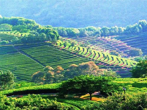雁南飛茶田是飽蘸著祖國(guó)茶文化,在青山綠水間濃墨重彩揮灑而就的融茶葉生產(chǎn)、加工與旅游、度假于一體的山區(qū)“三高農(nóng)業(yè)”、“生態(tài)農(nóng)業(yè)”、“旅游農(nóng)業(yè)”的開(kāi)放型旅游景區(qū),被譽(yù)為“現(xiàn)代農(nóng)業(yè)開(kāi)發(fā)的成功范例”,梅州“三高農(nóng)業(yè)”開(kāi)展的一個(gè)樣板和典范。雁南飛茶田在茶葉種植的同時(shí)結(jié)合了果樹(shù)的種植和園林綠化,大片的茶樹(shù)與龍眼、荔枝、芒果、枇杷等南國(guó)佳果、各式園林綠化景點(diǎn)相隔其中競(jìng)相媲美。雁南飛茶田在科學(xué)種植的同時(shí),采用傳統(tǒng)工藝結(jié)合現(xiàn)代高新技術(shù),精制出有獨(dú)特自然香型的雁南飛高級(jí)系列茗茶,并賦于濃厚的文化內(nèi)涵和高附加值,創(chuàng)造了名牌精品。雁南飛茗茶主要有:金單叢烏龍茶、自然香烏龍茶、金桂蘭烏龍茶、人參烏龍茶、金觀音烏龍茶、桂花烏龍茶,此外還有特制的茉莉花綠茶、映山紅紅茶等品種,適合不同品味的人士品茗。