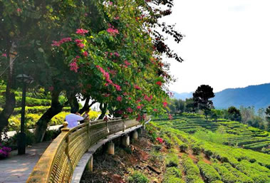 大道兩邊種植有小葉榕樹(shù)和鳳凰木,樹(shù)下種上各種季節(jié)性的鮮花并擺放大小溪石作園林景觀,山崖上種植的是勒杜鵑、炮仗花等花卉進(jìn)行立體綠化,右邊種植的生態(tài)龍眼園、荔枝園以及改造種植的馬占相思速生林;通過(guò)科學(xué)合理的種樹(shù)、種草和種花,不但保護(hù)了生態(tài)環(huán)境,而且兩邊美麗的園林景觀,給人一種世外桃源的感覺(jué)。