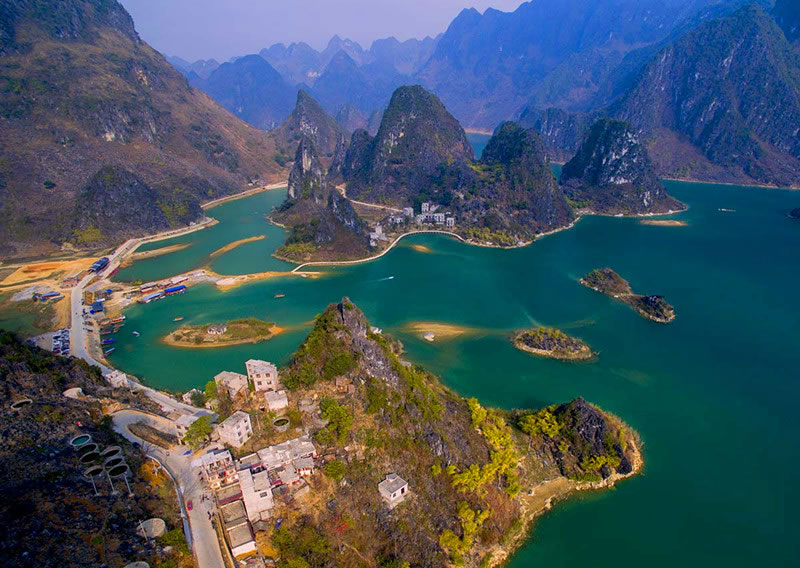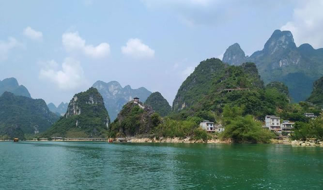 浩坤湖,位于百色市凌云縣下甲鎮(zhèn)和伶站鄉(xiāng)交界的地域,是澄碧河水系堵洞而成的湖,湖長6公里,湖寬50至1500米。豐水期湖面面積約20平方公里。 浩坤湖發(fā)源于青龍山的澄碧河是珠江源之一,澄碧河水自水源洞噴流而出,先在洞口盤根錯節(jié)的千年古榕下聚成一彎綠瑩瑩的湖,再流穿過凌云縣城中心曲曲折折地流出城外去。澄碧河穿過泗城,流經(jīng)一個叫下甲的地方,在彩架鉆入地下,潛行5公里后在弄盤露出地面,河水流經(jīng)下甲弄盤至伶站浩坤一帶受阻而成湖,這就是浩坤湖。 浩坤湖是凌云這高山林立的地方最大的一片水面,古時叫東湖, 俗稱高山神湖。湖山秀美、岸線曲折,島渚星羅,幾十座山峰緊緊挾攜著一湖碧水,湖內(nèi)島嶼交錯,水天一色,兩岸山奇崖秀:巨龍入地,掌上明珠、情蛙對語、望子牧歸、雞犬相聞、神駝昂首、相思夢縈,岸上花艷竹翠,藍天青山倒映水中,山水天渾然一體,令人陶醉,湖面寬闊,水質(zhì)清澈,自然風光十分優(yōu)美,岸畔竹影婆娑,釣翁頻現(xiàn),花樹掩映,黃髫小兒戲水,馬兒羊羔撒歡,老牛吃著嫩草,一派溫馨和諧、天人合一景象,是美麗南方中一片難得的自然景觀。具有良好的水上觀光、度假旅游的自然地貌基礎。