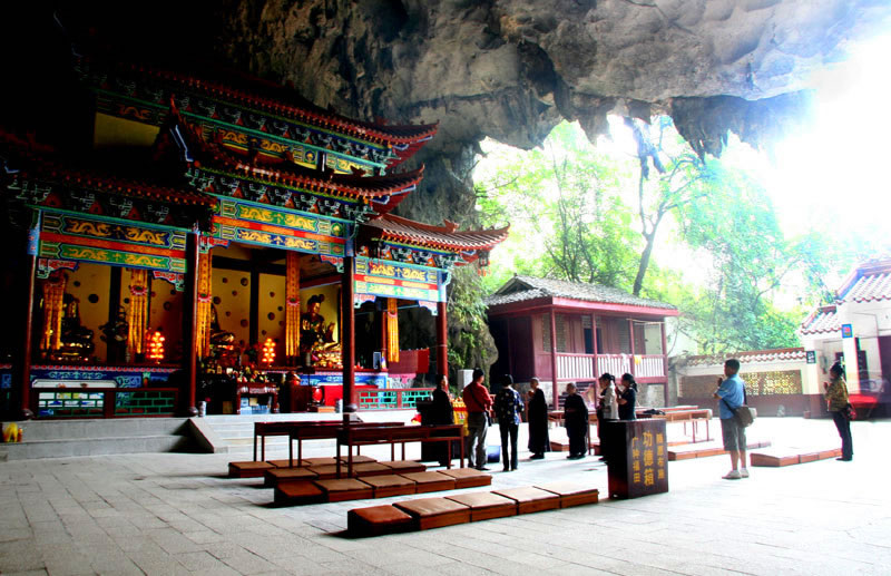 水源洞旅游景區(qū)位于凌云縣城北百花山下,距凌云縣城約1千米,也是廣西壯族自治區(qū)重點文物保護單位,百色市十八景之一。水源洞景區(qū)分為內(nèi)洞和外洞兩部分。洞外綠堤兩道,垂柳、古榕遍岸,飛鳥爭鳴,兩座對稱排列的石拱小橋,古樸典雅。洞內(nèi)有占地22000平方米、寬38米、高20.8米的大廳。洞門最高處的山崖絕壁上,刻有乾隆四十三年(1778)左江觀察使王玉德所題的“第一洞天”,大廳四周絕壁上刻有明、清以來文人墨客的題字、題聯(lián)、題詩80余幅,是凌云縣古石刻最集中、保護最完整的地方,展示了凌云近千年的州、府、縣建制歷史文化。