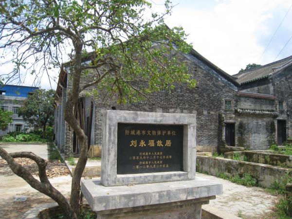 劉永福故居其中一處位于那良鎮(zhèn)圩邊的那營村。建于清光緒二年(1876年)。主建筑為磚木結(jié)構(gòu),二進(jìn)十間房屋,中有天井,兩側(cè)為廂房,有回廊相通,屋檐以琉璃瓦裝飾,是一座典雅古樸的建筑。