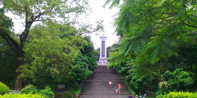 中越友誼公園總面積260畝。萋萋草木順著低矮的坡岡錯(cuò)落地生長(zhǎng)著。公園中心最高處矗立著“中越人民革命烈士紀(jì)念碑”。公園內(nèi)有1960年越南胡志明主席贈(zèng)送樹(shù)種栽的兩棵友誼樹(shù)。公園南側(cè)小山上,有在解放路戰(zhàn)爭(zhēng)中英勇獻(xiàn)身的陳漢東等六位烈士墓。陳漢東原名黃木芬,1937年參加中國(guó)共產(chǎn)黨,1945年6月在防城縣那良抗日武裝起義領(lǐng)導(dǎo)人之一。任欽防華僑抗日游擊大隊(duì)黨代表兼參謀長(zhǎng),于1945年6月底同敵人的一次戰(zhàn)斗中英勇?tīng)奚?959年移葬于此,墓碑上刻有“陳漢東烈士合葬墓”。從公園入口處,順著林間的小徑往右側(cè)山丘走去,走百多米,一座高聳的紀(jì)念碑便立于眼前。紀(jì)念碑正背面分別用中越文字題寫(xiě)“光榮的人民英雄永垂不朽”,碑座正背面也分別用中越文字鐫刻著在抗法援越戰(zhàn)上犧牲的中國(guó)英烈名字。1958年經(jīng)東興縣人民委員會(huì)與越南海寧省政府商定,為在1954年的援越解放斗爭(zhēng)中犧牲的中國(guó)軍人立這座紀(jì)念碑。中越人民友誼公園,正是為紀(jì)念這份用鮮血鑄成的戰(zhàn)斗而修建的。