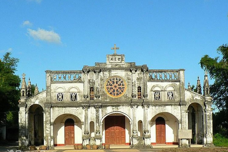 羅浮恒望天主教堂距離市中心約5公里,由法國(guó)傳教士建于1832年,歷史悠久。當(dāng)時(shí)的羅浮天主教堂屬北海教區(qū)。初建時(shí)教堂占地10000余平方米,設(shè)有教堂、鐘樓、育嬰室(收養(yǎng)棄嬰)、男校、仁愛(ài)堂、圣堂、織紡堂等。由于歷經(jīng)歲月的沖刷、歷次政治風(fēng)暴的滌蕩以及人口不斷增加的影響,如今的羅浮天主教堂只剩幾百米的范圍內(nèi)。羅浮天主教堂是東興所有的三個(gè)教堂中最為典型的法式建筑。教堂正面及兩側(cè)由十幾根柱子托起,形成大半框形的走廊。每根柱子之間都砌成拱形的門的形狀,相互承接。每根柱子的上方都修成如鐘樓的樣式,并努力地讓它接近天空。