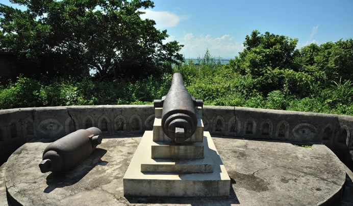 白龍古炮臺(tái)位于防城區(qū)江山鄉(xiāng)白龍尾半島南端,由“白龍臺(tái)”、“銀坑臺(tái)”、“龍珍臺(tái)”和“龍?bào)J臺(tái)”四座炮臺(tái)組成,是清代炮臺(tái)。清政府為鞏固海防,清光緒十三年(1887年)由張之洞親自率部到東興、竹山、江平、白龍尾勘察選址,決定在白龍尾修建炮臺(tái),由?跔I(yíng)管帶陳良杰督建,清光緒二十年(1895年)修成。扼北部灣水道入防城、東興咽喉,守護(hù)防城江口、北倫河口,與企沙鎮(zhèn)的石龜頭炮臺(tái)互為犄角,俗稱“龜蛇守水口”,和位于縣城西部邊境沿線咽喉的那梭炮臺(tái)一起,組成了一個(gè)較為完整的沿海防御體系。2006年5月,納入連城要塞遺址和友誼關(guān),公布為國(guó)家級(jí)文物保護(hù)單位。