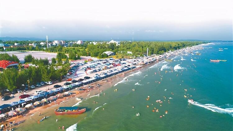 金灘,位于京族萬(wàn)尾島的南邊,全長(zhǎng)13公里,與越南的風(fēng)景名勝區(qū)萬(wàn)柱島隔海相望。金灘沙細(xì)、坡緩、水清、浪平,且無(wú)海藻、無(wú)鯊魚(yú)、無(wú)污染。沙灘由海岸緩緩斜入海中,是集陽(yáng)光、沙灘、海水于一身的天然“三·S”海濱浴場(chǎng)。岸上有20多公里長(zhǎng)的椰樹(shù)、木麻黃觀光林帶。金灘空氣氧離子含量是內(nèi)陸城市的500~1000倍,最高氣溫33℃、最低氣溫6℃,年平均氣溫在20℃~23℃之間。