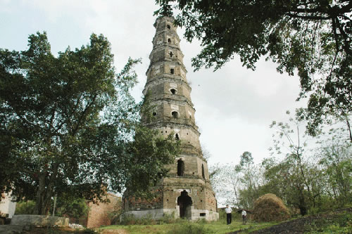 貴港市城東五里的羅泊灣,形如蘿卜,因而原名蘿卜灣。灣上有一座巍峨古塔,名曰安瀾,又曰漪瀾,塔高九層約30多米,底層周長36.62米,墻厚1.9米,塔身呈八角形,共有35個形狀不同的窗口,坐南向北臨江而立,建筑風(fēng)格非常獨特。此塔建于清嘉慶二十三年(1818),已經(jīng)有200多年。昔日登塔可望江城,江中百舸爭流,浪擊飛舟,城上高樓林立,車水馬龍,人來人往,無限風(fēng)光在塔峰。此塔遭受過無數(shù)次特大洪水的沖撞和雷電轟擊,仍巋然不動,穩(wěn)如泰山,塔頂?shù)耐咂坏袈洌頉]有毀損,保留全貌。