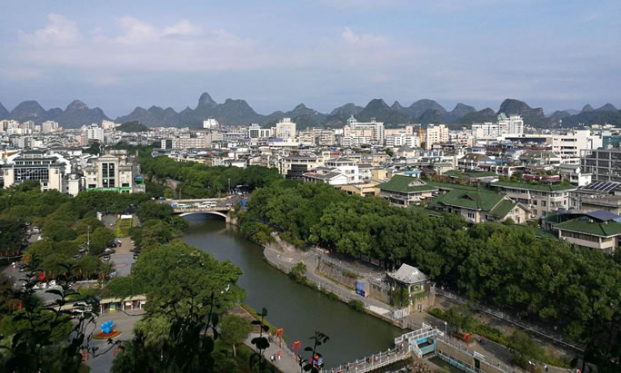 水文 象山區(qū)主要有漓江、桃花江、相思江、寧遠河、南溪,以及杉湖,是桂林市“兩江四湖”環(huán)城水系工程、大型旅游景區(qū)重要組成部分。此外,在溶蝕、沖積平原中還分布著一些大小不一的河流、湖泊,如由萬福潭沿上月山、佛殿村流入相思江的佛殿河,由芬塘村經(jīng)桂林市園藝場流入相思江的牛過河等。
