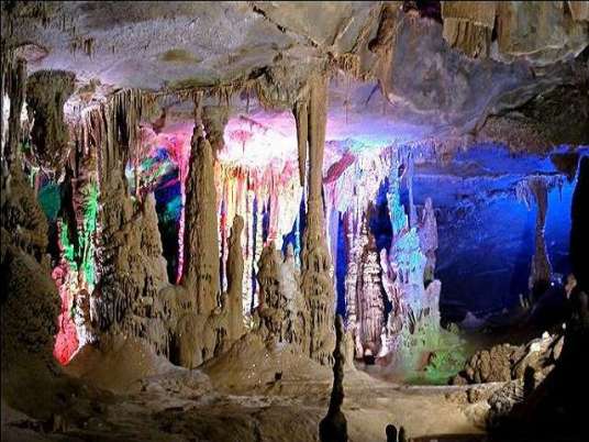此洞分為4個(gè)大殿堂,輝煌瑰麗,多姿多彩,讓人看了留連忘返。其中最為壯觀的是那個(gè)100多米高,幾百米寬、1000多米長(zhǎng)的大殿堂內(nèi),幾十個(gè)70~80米高、3~5米直徑的鐘乳石柱,構(gòu)成龐大的石塔群,挺拔高聳,雄偉壯麗,讓人驚嘆不已。加上洞中霧氣繚繞,變幻無(wú)窮,更使這個(gè)巍巍景觀顯得詭秘多姿。這些巨大的鐘乳石塔,是經(jīng)過(guò)幾億年巖溶發(fā)育的結(jié)晶,其中最大的石筍需十人方能合圍,最高的石柱達(dá)39米,實(shí)屬“天下之最”。