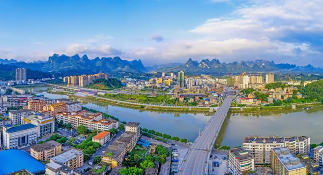 環(huán)江東鄰廣西工業(yè)名城柳州市,北與貴州旅游縣城荔波相望,距河池市政府67公里、廣西首府南寧市270公里,離“山水甲天下”的桂林市300公里。目前,貴陽至南寧高速鐵路加快推進并于今年6月運營通車,途徑環(huán)江的貴州荔波至河池德勝高速公路正有序推進,“雙高”建成后將從根本上改變環(huán)江在廣西發(fā)展大局中的空間方位,助推環(huán)江更好地融入南寧、貴陽一小時經(jīng)濟圈,融入巴馬長壽養(yǎng)生國際旅游經(jīng)濟圈,融入桂黔世界遺產(chǎn)大旅游經(jīng)濟圈,融入粵港澳大灣區(qū)、北部灣經(jīng)濟區(qū)。