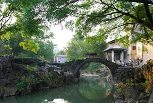 黃姚古鎮(zhèn)有“詩境家園”的“小桂林”之稱。境內(nèi)奇峰林立,古木參天,溶洞幽深,清溪環(huán)繞。古鎮(zhèn)有“六多”:山水巖洞多、亭臺(tái)樓閣多、寺觀廟祠多、祠堂多、古樹多、楹聯(lián)匾額多。古鎮(zhèn)內(nèi)有山必有水,有水必有橋,有橋必有亭,有亭必有聯(lián),有聯(lián)必有匾,構(gòu)成了古鎮(zhèn)獨(dú)特的風(fēng)景。古鎮(zhèn)8條主街道全部用黑色石板鑲嵌而成,雖歷經(jīng)滄桑,仍無絲毫松動(dòng),街道平滑如鏡。鎮(zhèn)內(nèi)600多座古建筑為九宮八卦陣式布局,屬嶺南風(fēng)格建筑。